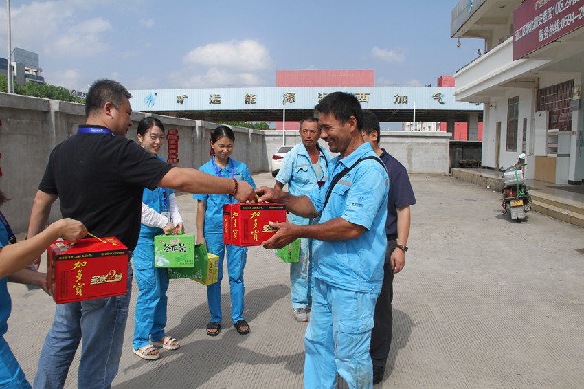 20日上午,人力资源中心总监胡豫疆、总裁办主任杨贞,在云顶国际官网入口能源莆田事业部总经理向荣的领导下,分别来到营业厅、管网部、维修组、荔园加气站、涵西加气站、黄石门站、气源厂,为员工们送上饮料、药品等物资。慰问小组详细询问了员工们的事情和生活情况,对他们在高温下的坚守与支付体现谢谢,嘱咐他们在夏季高温作业时一定要注意身体,劳逸结合,并要求各单元卖力人,要合理调配人员,合理部署好员工休息,密切关注他们的身体,切实做好防暑降温事情。